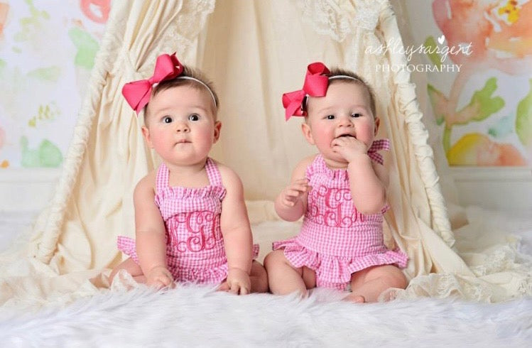 Girls Pink Sun Bubble - Applique Bow with Monogram