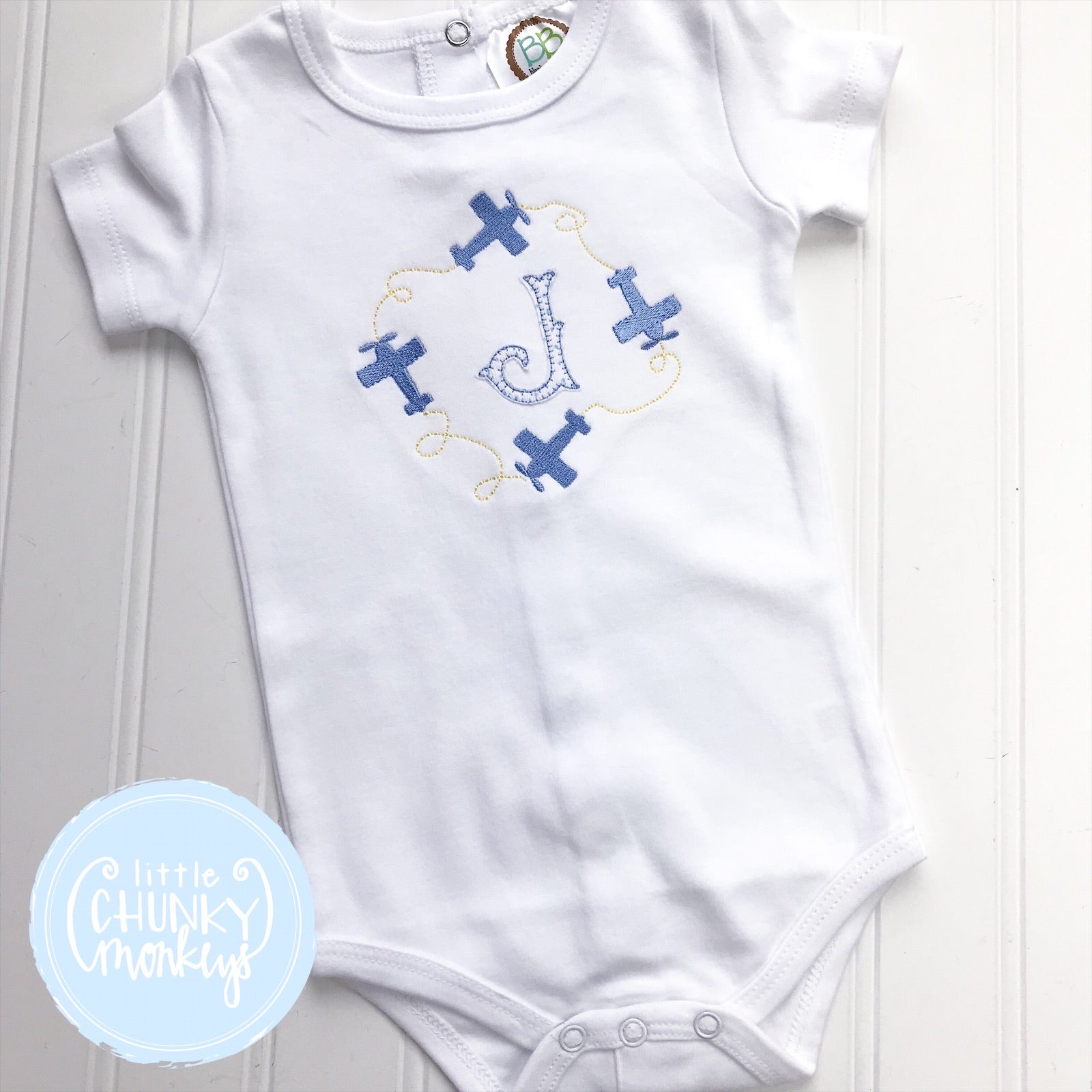 Baby Boy Bodysuit- Embroidered Airplanes on White