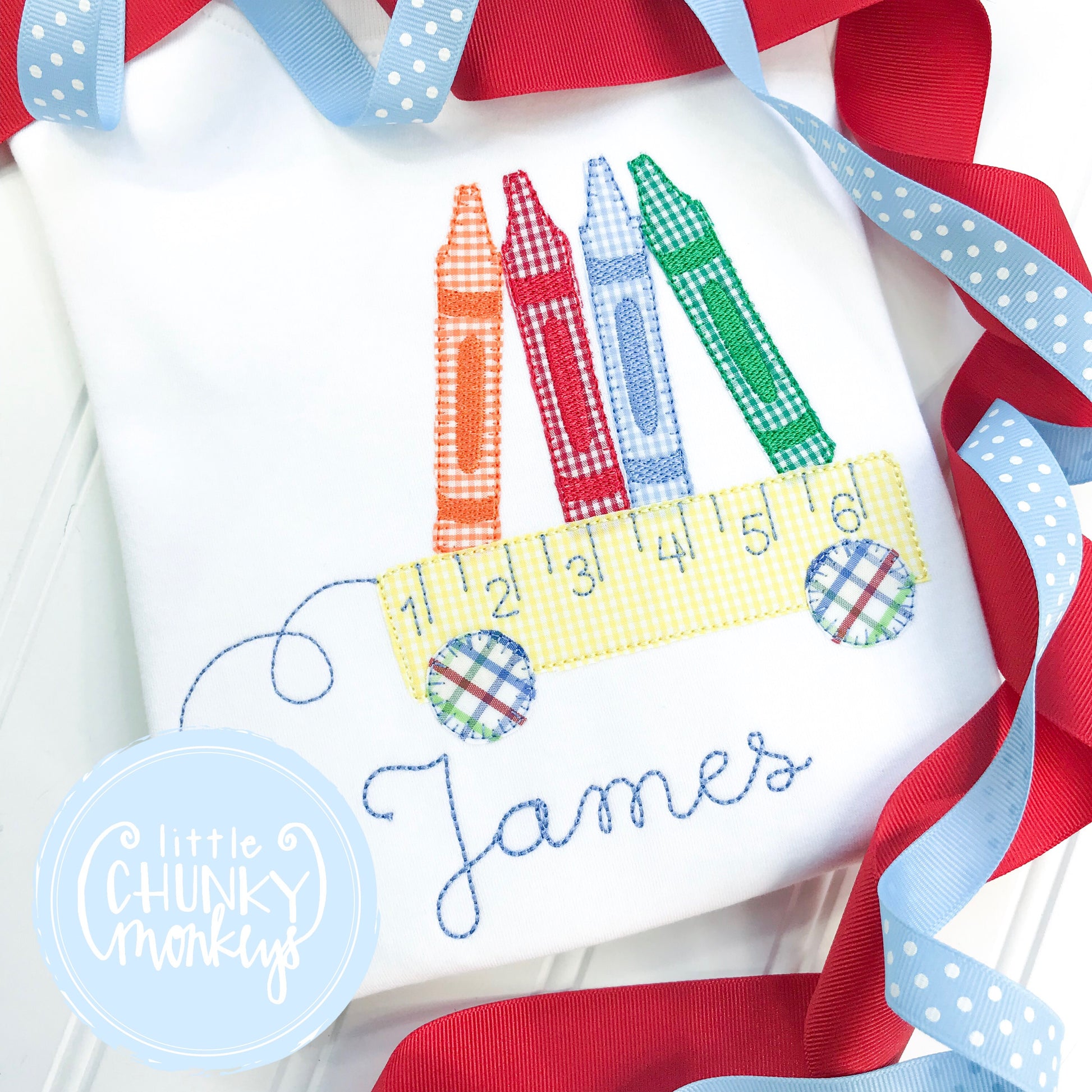 This sweet shirt is perfect for back to school, class party, photo shoots. It features an crayon wagon.