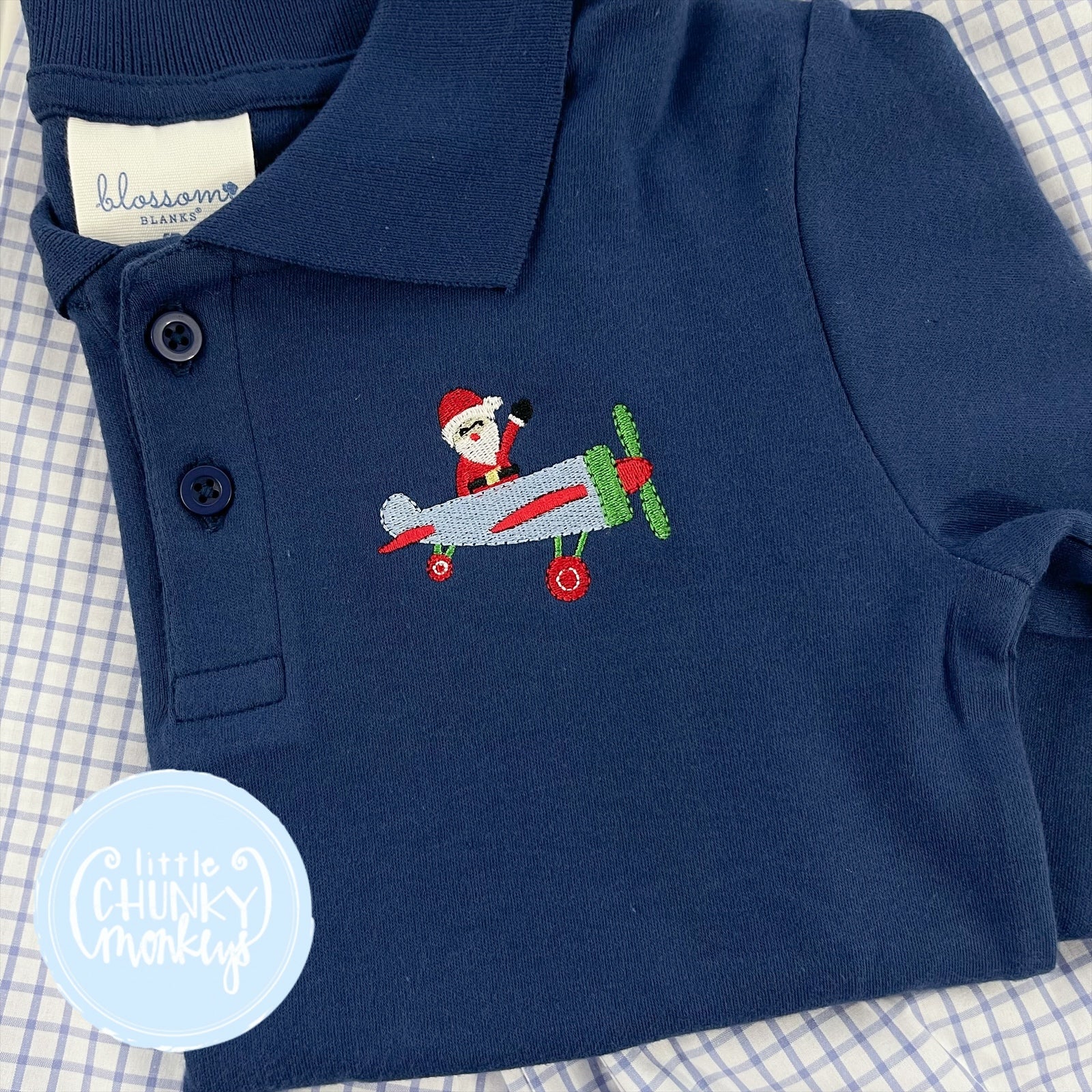 This sweet shirt is perfect for all Christmas festivities. It features a mini Santa flying his airplane on collared polo shirt.