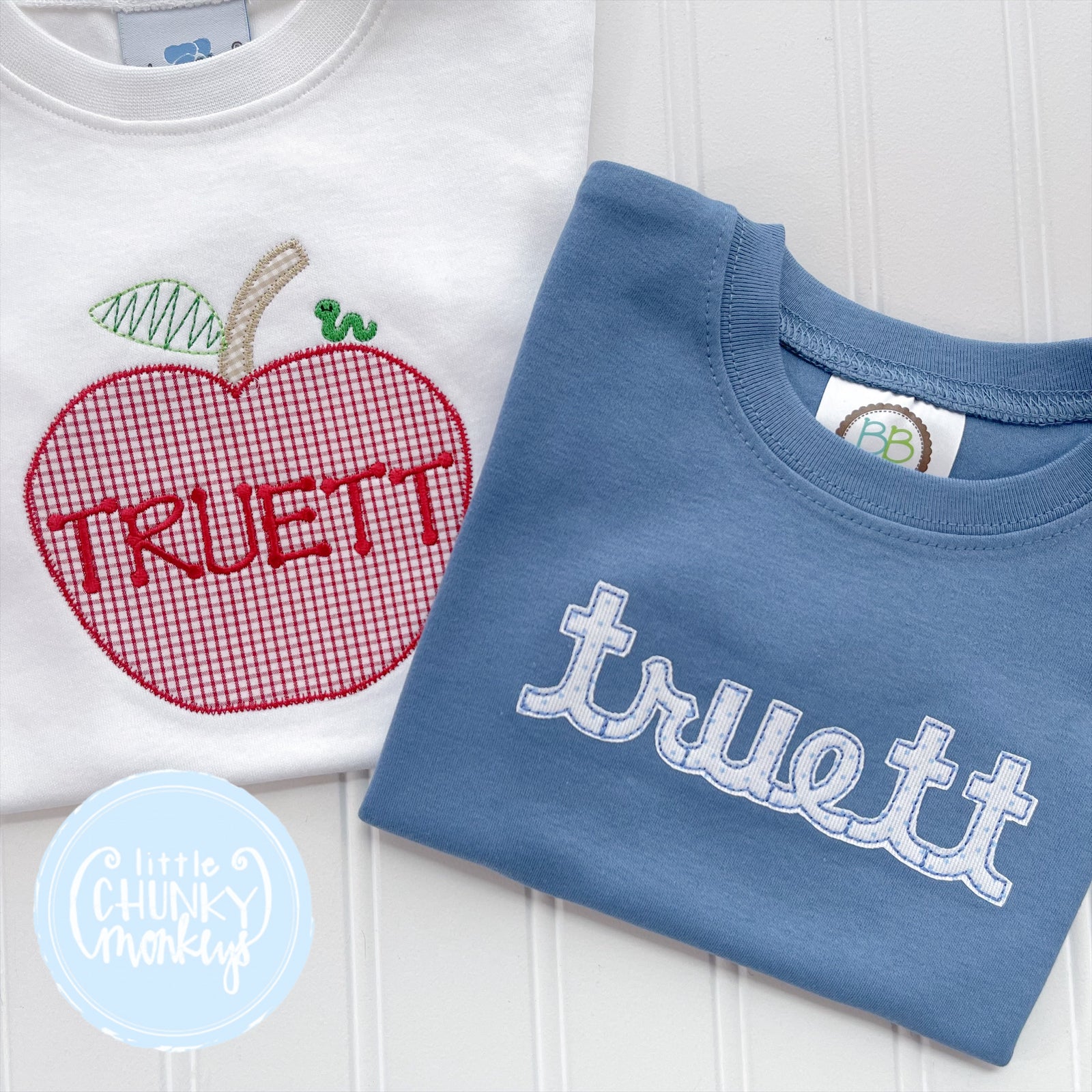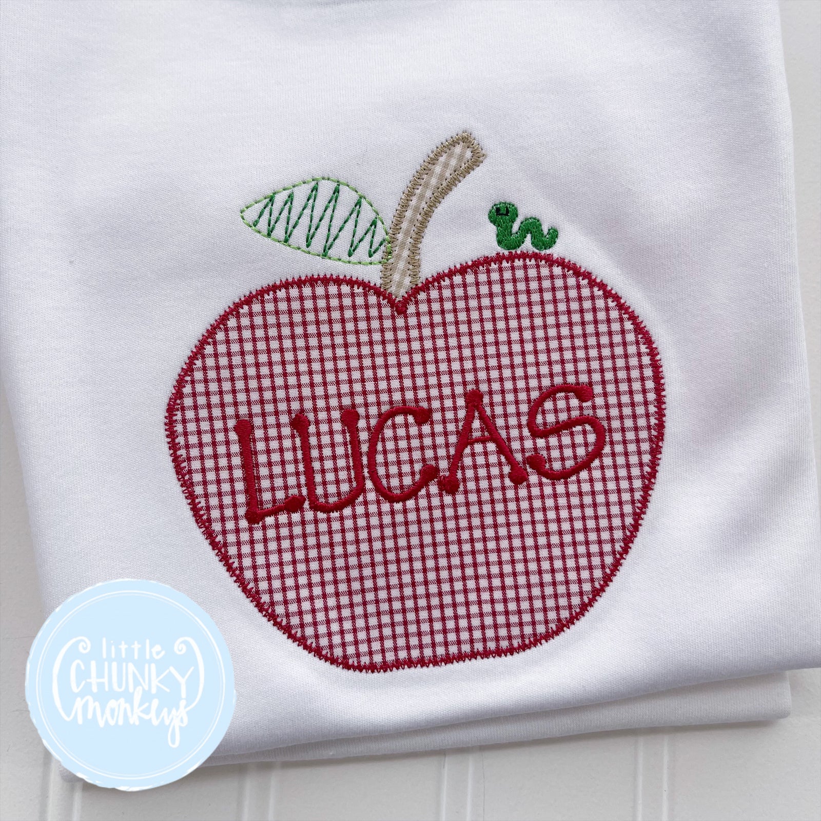 This shirt with an apple, tiny worm and personalized so sweet is the perfect addition to your child’s first week wardrobe!