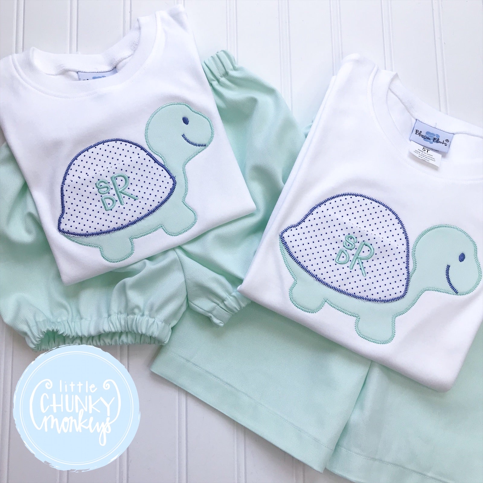 Boy Shirt - Applique Turtle with Pocket on White Shirt