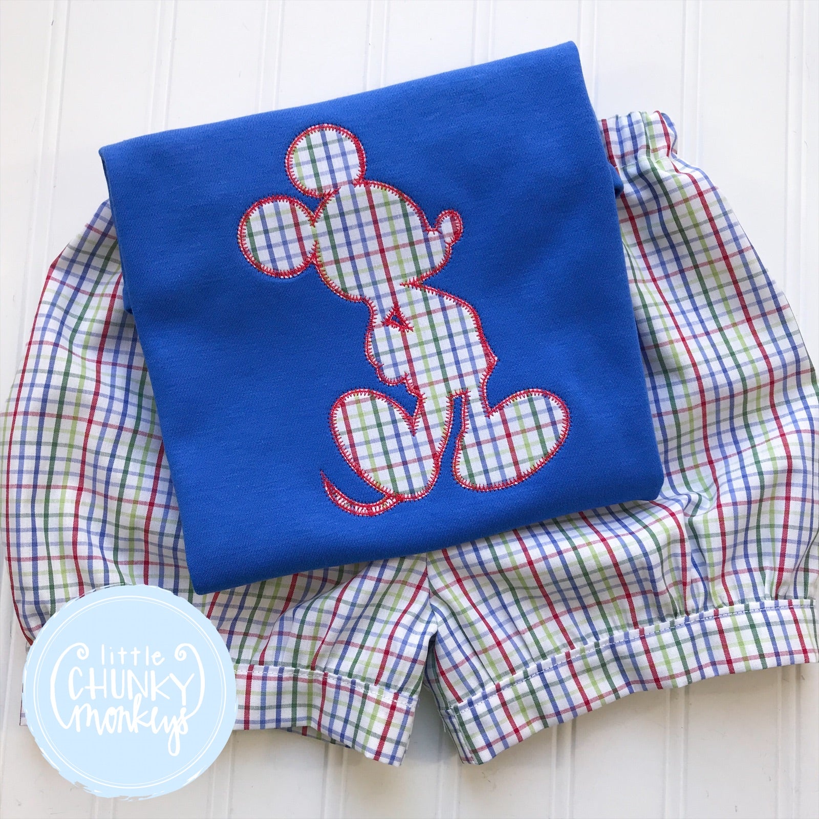 This simple shirt is perfect for year round wear or trips to theme park vacations. It features a magical mouse in primary check