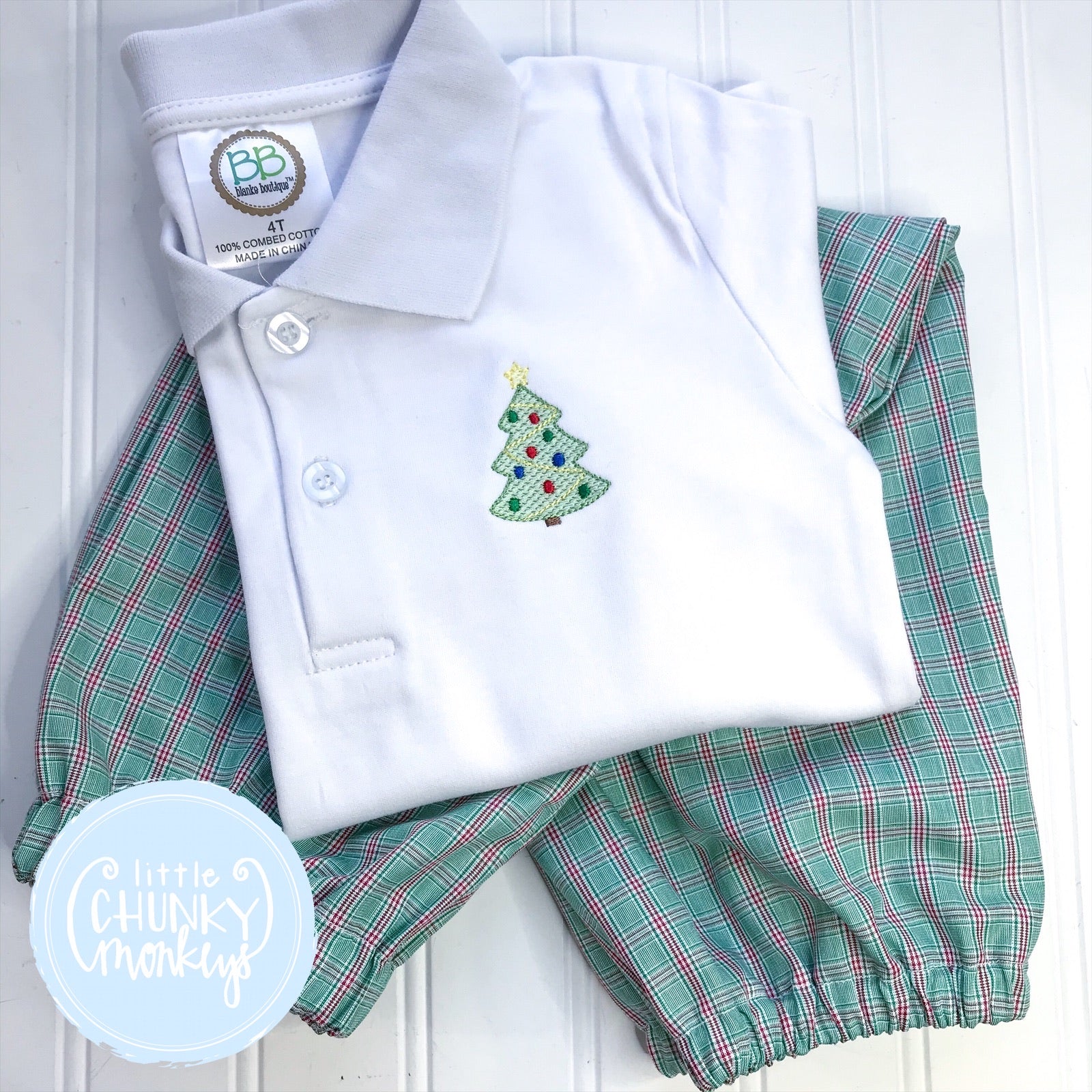 Boy Polo Shirt - Polo Shirt with Stitched Christmas Tree