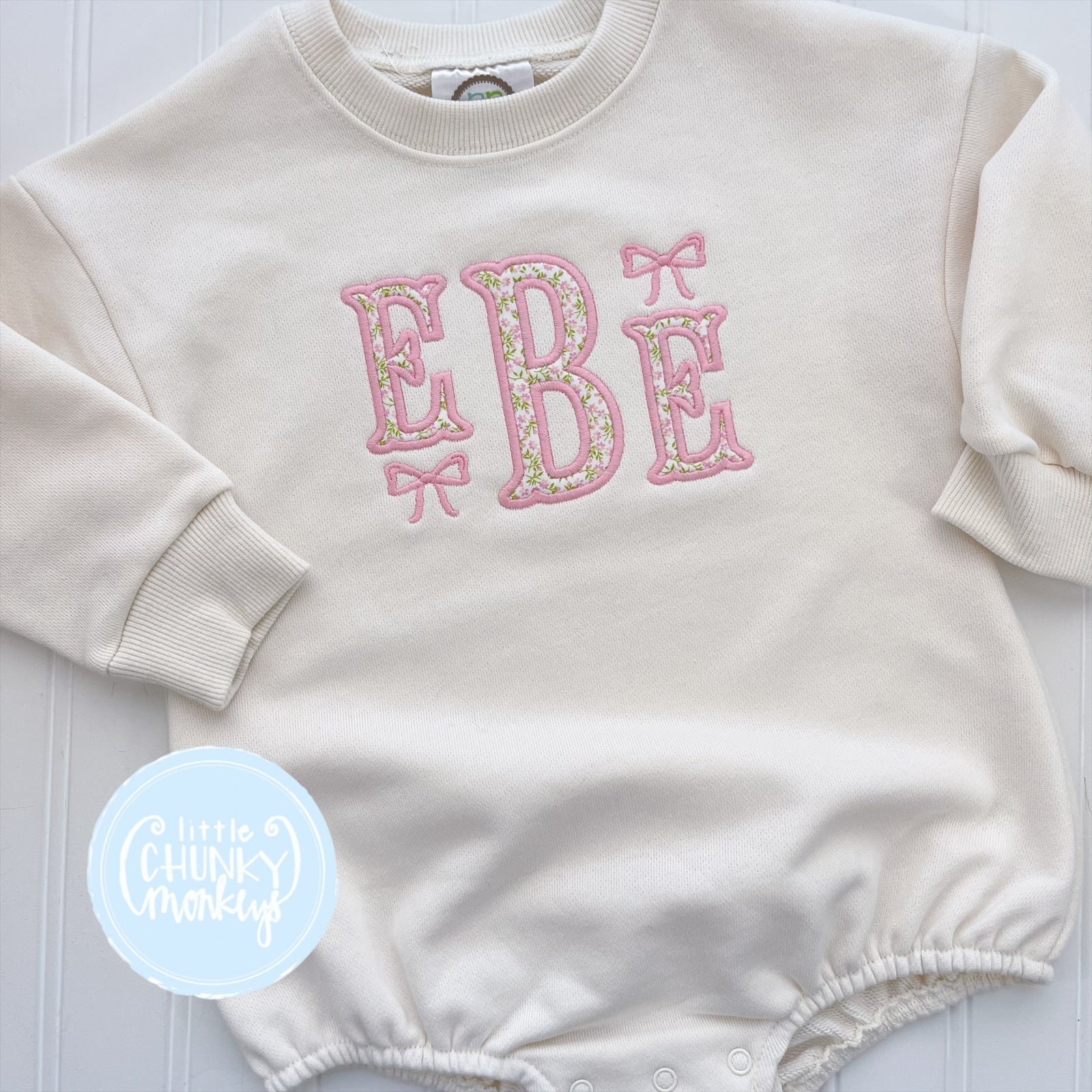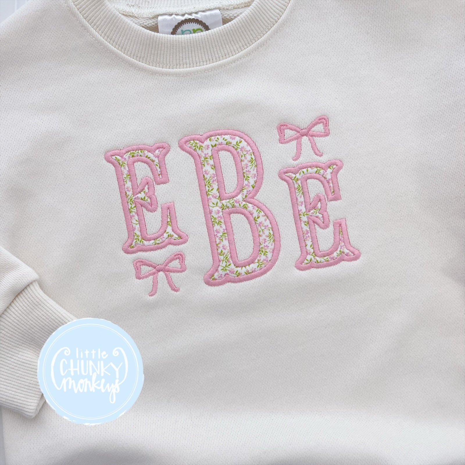 Cream Sweatshirt Bubble - Floral Applique Monogram with Bows