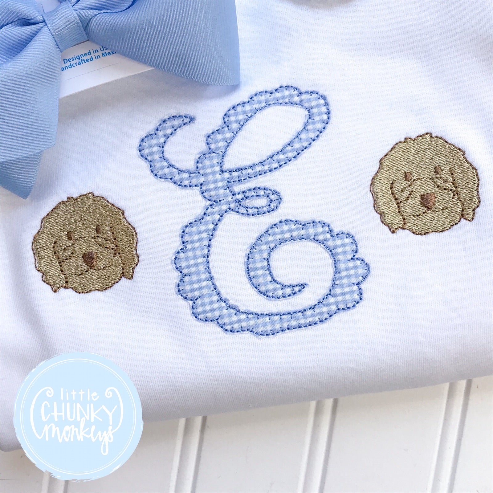 Girl Peter Pan Collar Shirt - Applique Initial with Puppy faces