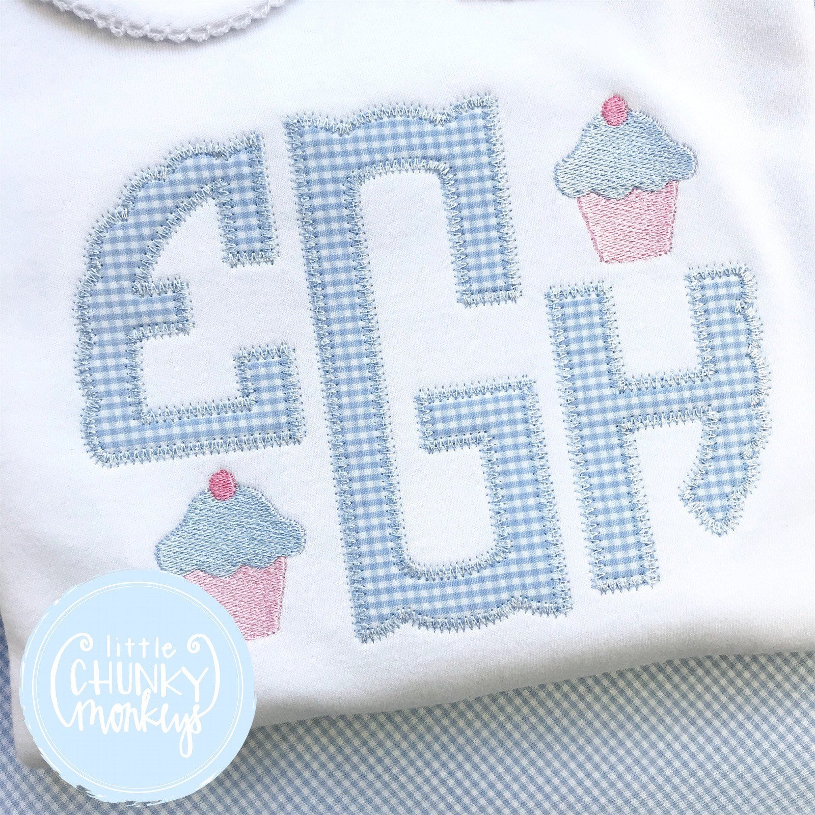 Girl Peter Pan Collar Shirt - Appliqué Monogram with Mini Cupcakes