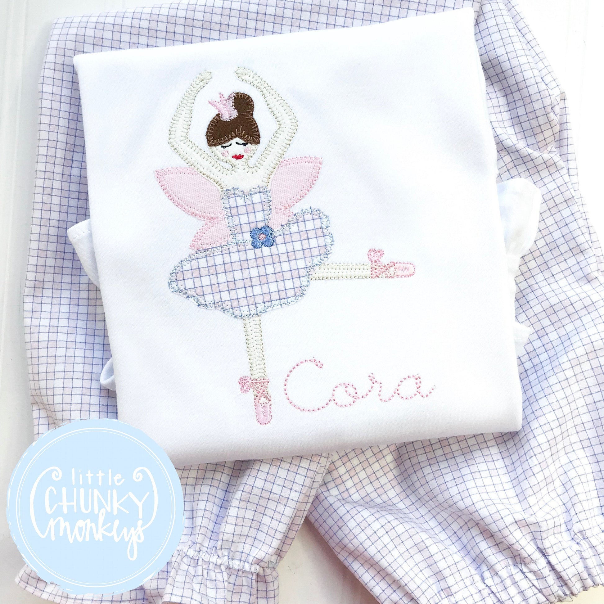This shirt is perfect for vacations, birthday parties or year round wear. You little girl will love it! It features a sweet appliqué ballerina.