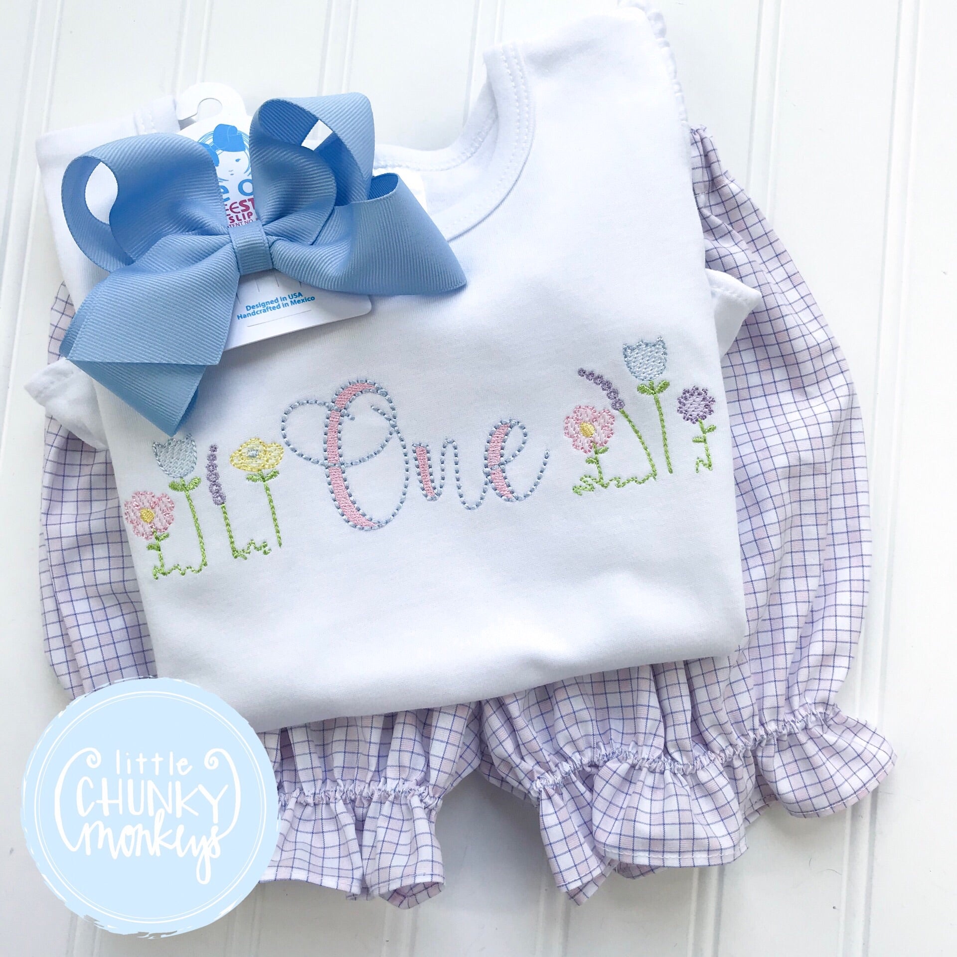 This shirt is sure to be a girl favorite! It's perfect for parties. It features vintage flowers and a stitched "one". Please specify in comments colors and number that needs to be stitched.