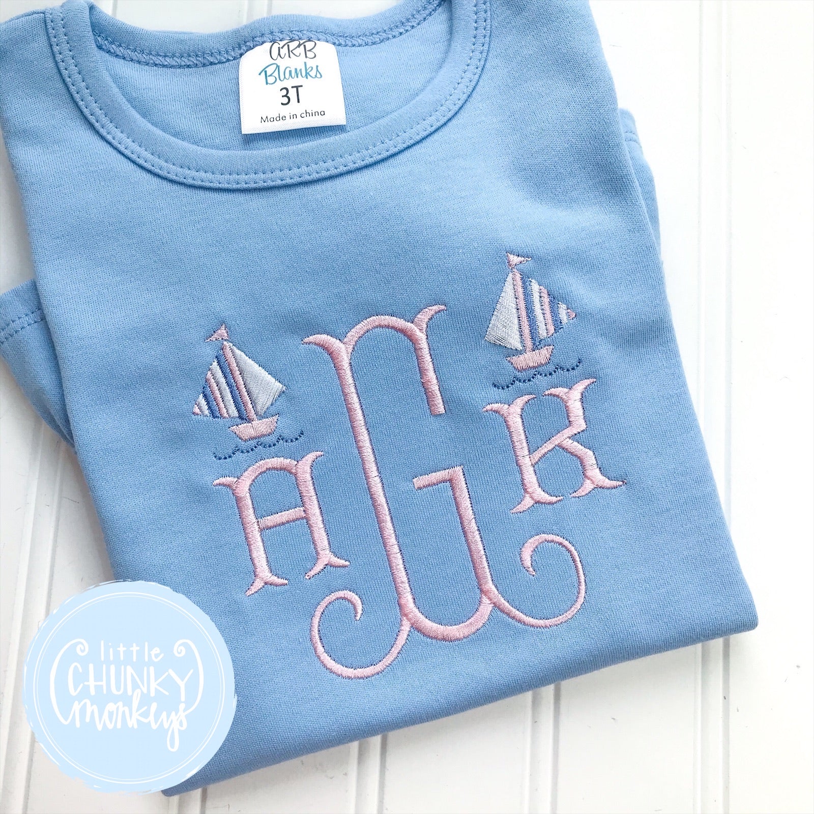 Girl Shirt - Monogram Tee with Sailboats on Light Blue Shirt
