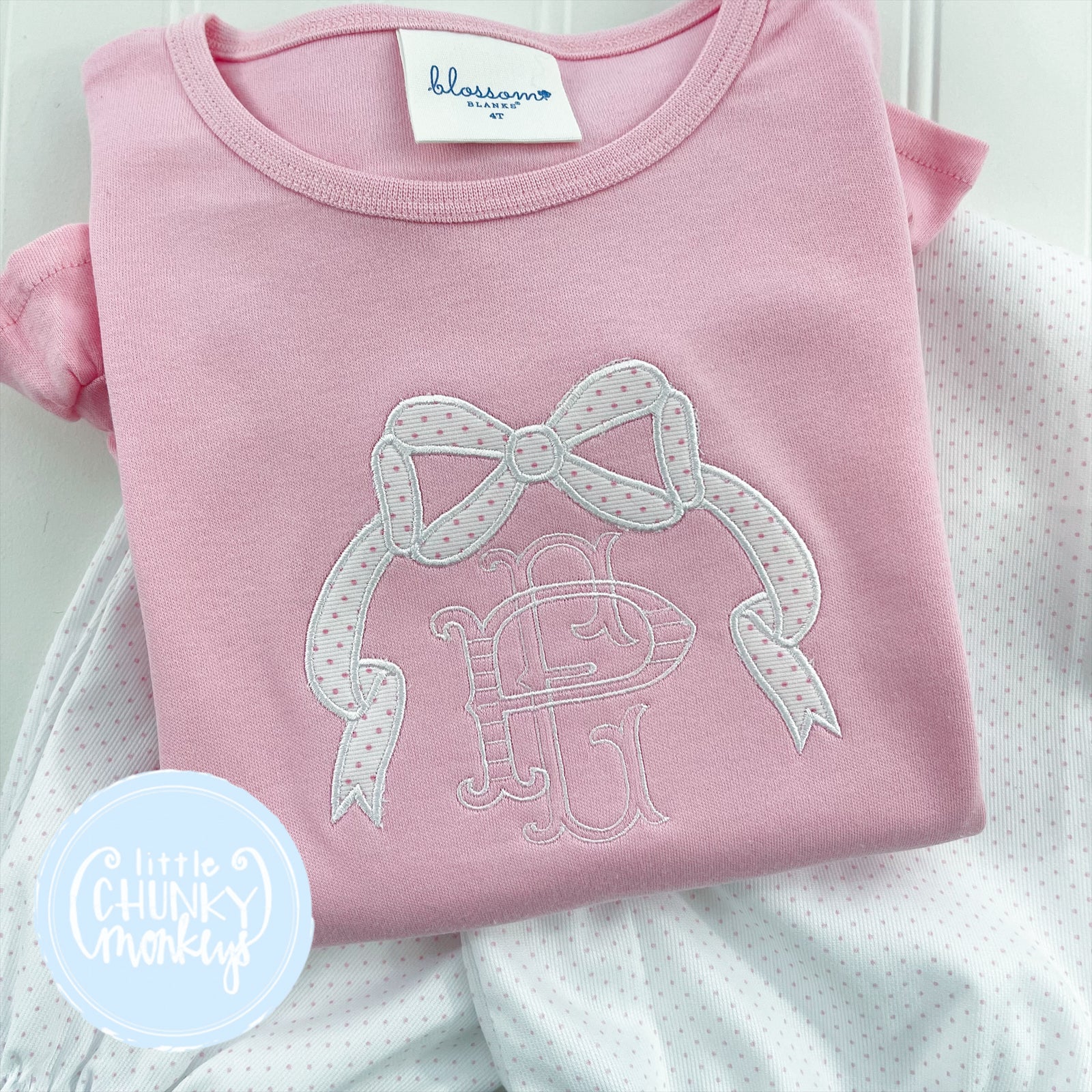 This shirt is perfect for school and everyday wear! It features personalization in pink on a pink shirt.