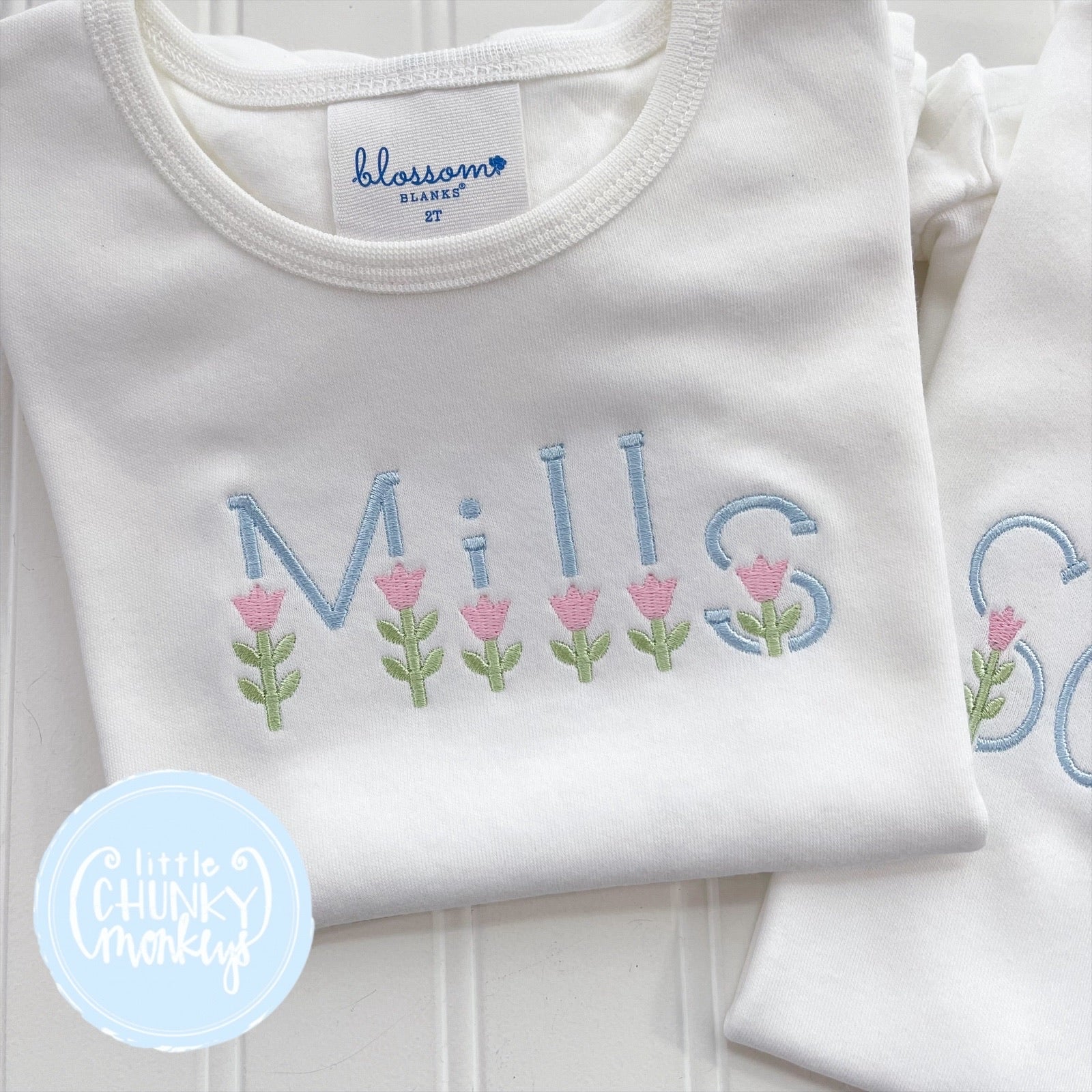 This shirt is perfect for vacations, birthday parties, spring and summer. It features our favorite tulip font!