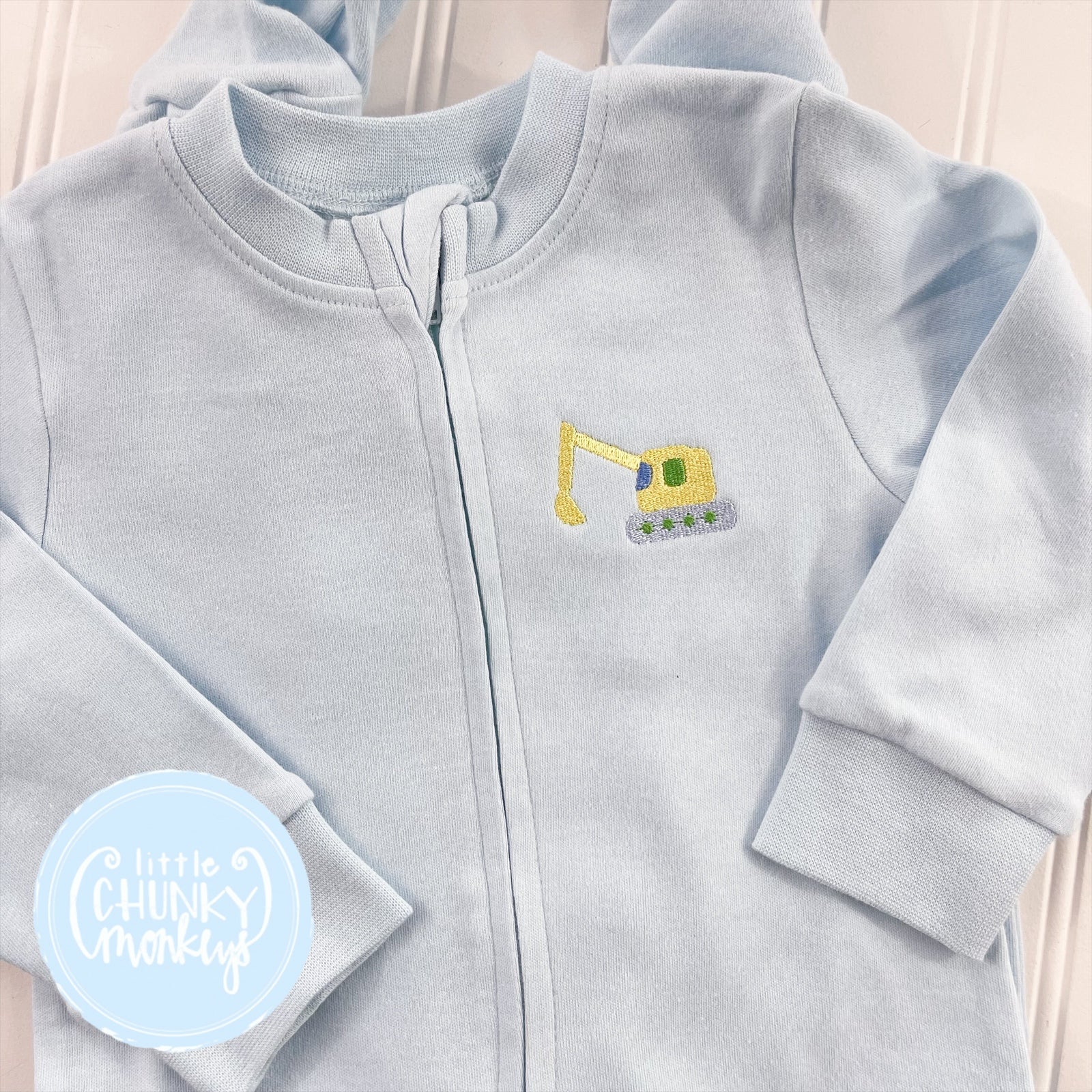 Light Blue Footed Romper - Excavator
