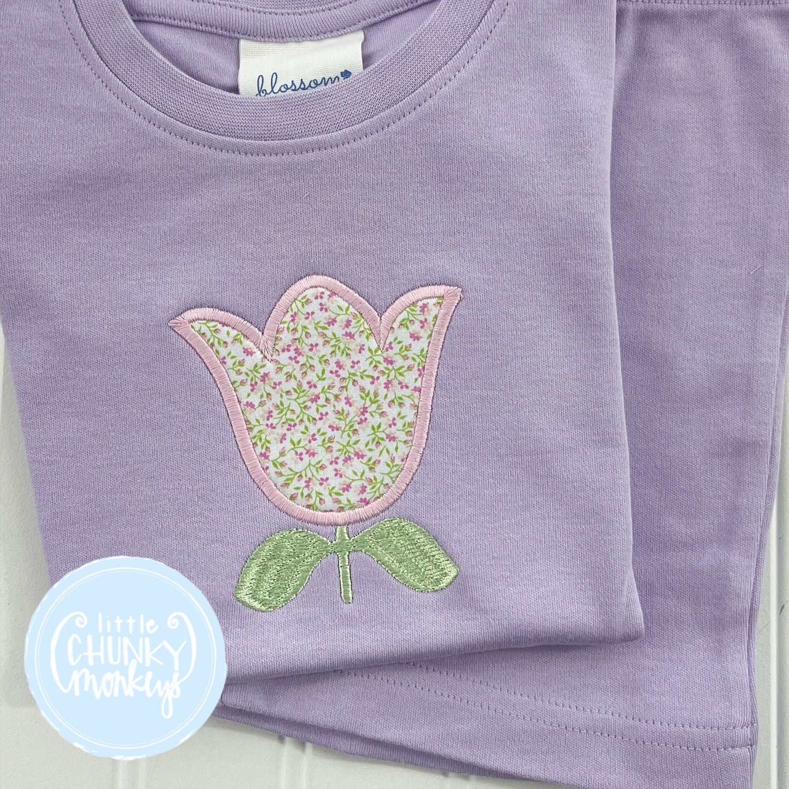 Lilac Fitted Organic Cotton Pajamas - Floral Appliqué Bow Monogram
