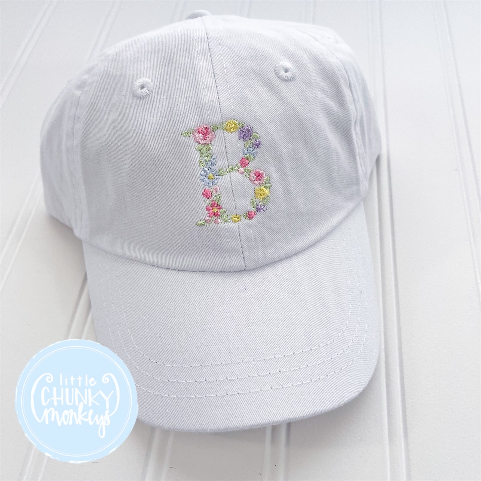 Toddler Kid Hat - Floral Initial White Hat